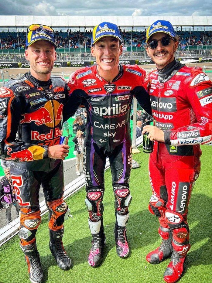 Sous des gouttes de pluie et chaussé en pneus slick, le Catalan a déposé le Champion du monde en titre et actuel leader du Championnat 2023, le pilote officiel Ducati Lenovo, Fransesco ‘Pecco Bagnaia dans le dernier tour de ce Grand Prix de Grande Bretagne pour signer le deuxième succès de sa carrière en Moto GP!
