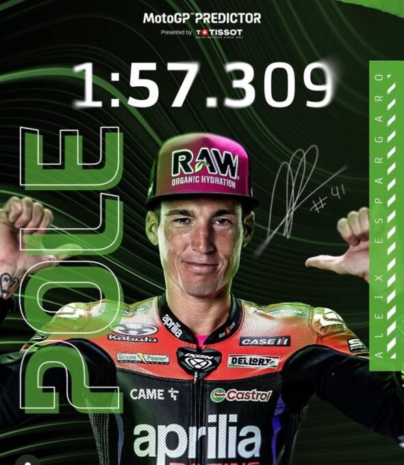 Espargaro décroche la septième pole position de sa carrière, sa deuxième de la saison après celle obtenue lors du GP de CatalogneIl réalise un tour absolument prodigieux en 1’57.309, établissant au passage un nouveau record de la piste. Vainqueur sur ce tracé l’an dernier, le Catalan fait du coup figure de favori et un candidat a une nouvelle victoireJorge Martin le plus rapide vendredi au guidon de la Ducati Pramac des essais libresne signé que le quatrième chrono.Quant a Marc Marquez qui pilote lui l’une des Ducati Gresini il obtient le septieme rang et le ´rookie Pedro Acosta avec la GasGAs la neuvièmePrécisons tout de meme qu’en toute fin de séance, Jorge Martin a été gêne et perturbé par un drapeau jaune, suite à une chute de Maverick Vinales avec la seconde Aprilia ´usine!Johan Zarco au guidon de sa Honda LCR et Fabio Quartararo avec la Yamaha ne se classant qu’aux seizième et dix-huitième rangs! Alfredo SORIAPhotos : MOTOGP(A suivre)]]>