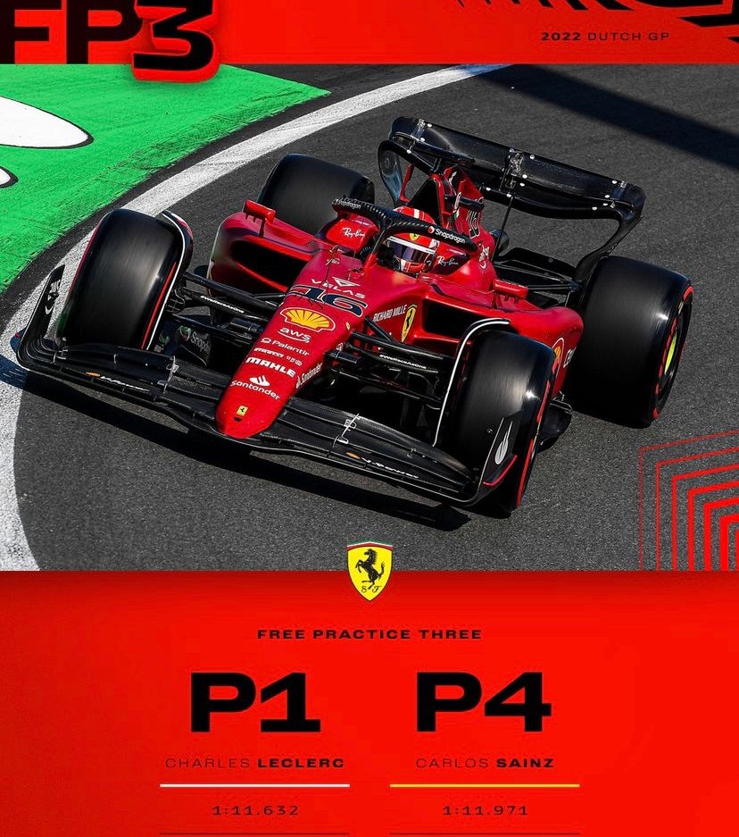 Charles Leclerc a établi sur le tracé de Zandvoort,le meilleur temps ce samedi 3 septembre 2022 en fin de matinée, lors des essais finaux du Grand Prix des Pays-Bas 2022, avec 1’11″632, devançant la Mercedes de George Russell de seulement… 0,066 seconde et la Red Bull de Max Verstappen troisième avec 1’11″793, à 0″161.