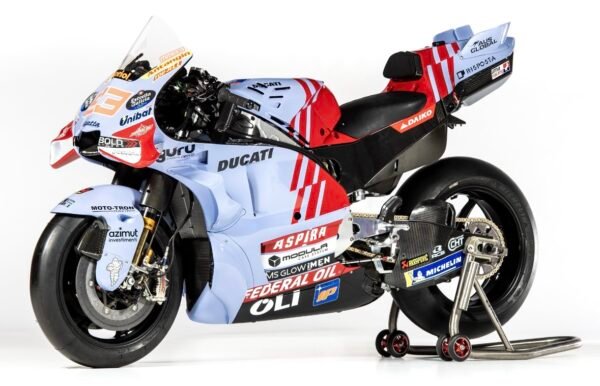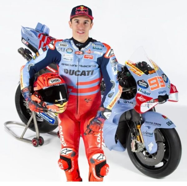 L’équipe Italienne Gresini Ducati, a dévoilé ce samedi 20 janvier, la livrée de ses deux machines qui participeront au Moto GP 2024, et grande nouveauté, dont l’une des deux Ducati Gresini, sera désormais pilotée par le multiple Champion du monde, l’Espagnol Marc Marquez, en provenance de l’écurie Honda HRC Repsol, pour laquelle il pilotait depuis onze saisons !.La présentation de la livrée 2024 des Ducati Gresini, s’est déroulé en Italie ce samedi soir à Riccione, au bord de l’Adriatique et ce dans une boîte de nuit très fréquentée de l’Émilie-Romagne.L’octuple Champion du monde succède au guidon au transalpin Fabio Di Giannantonio, non conservé bien qu’auteur d’une fin de saison tout à fait exceptionnelle !