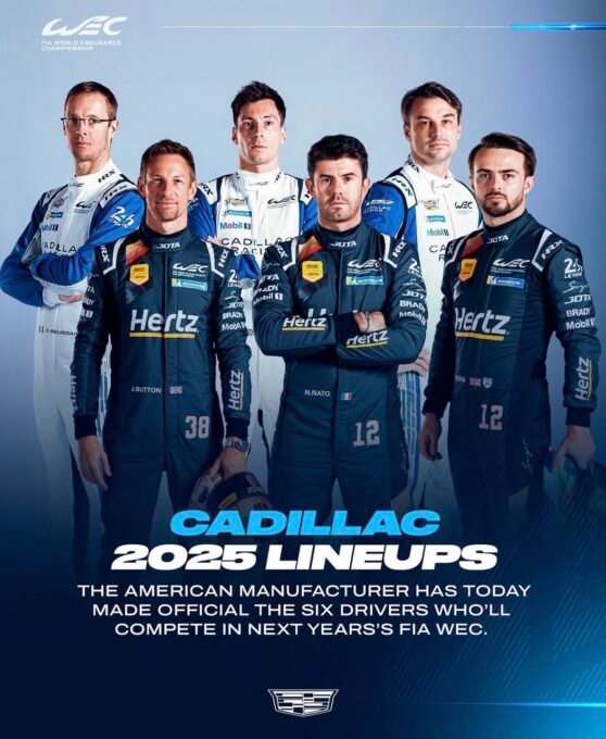 Le Néo-zélandais Earl Bamber et le Britannique Alex Lynn, seront à nouveau partenaires au sein de Cadillac Racing et ce pour la troisième saison d’affilée en WEC.La paire sera épaulé par le Français Sébastien Bourdais. Lequel partageait le volant la Cadillac V-Series.R, engagée par le Chip Ganassi, au cours de trois courses du WEC en 2024 et également aux USA, à l’occasion de la totalité de la saison du Championnat d’endurance Américain de l’IMSA WeatherTech SportsCar Championship 2024, au cours de laquelle il a remporté deux victoires dont Petit Le Mans et deux pole positions.Questionné Sébastien Bourdais a indiqué :« C’est un nouveau défi, une nouvelle équipe et la reconnaissance de faire partie d’une nouvelle aventure. JOTA est une structure bien connu et couronné de succès en voitures de sport en Europe depuis de nombreuses années. La décision de Cadillac d’engager deux voitures et de s’associer à JOTA témoigne de l’engagement de la firme dans les courses d’endurance et de sa volonté de réussir dans le Championnat du monde WEC. Nous avons fait preuve de vitesse cette saison, mais nous n’avons pas obtenu les résultats que nous souhaitions, alors je vais travailler dur pour les obtenir. Nous apporterons des expériences différentes qui s’ajouteront à ce qu’ils ont fait avec la Porsche pour optimiser l’ensemble. »Les Britanniques, Will Stevens et l’ancien Champion du monde de Formule 1, couronné avec la Brawn GP en 2009, Jenson Button qu’épaulera un autre pilote tricolore Norman Nato, seront associés sur la deuxième Cadillac V-Series.R