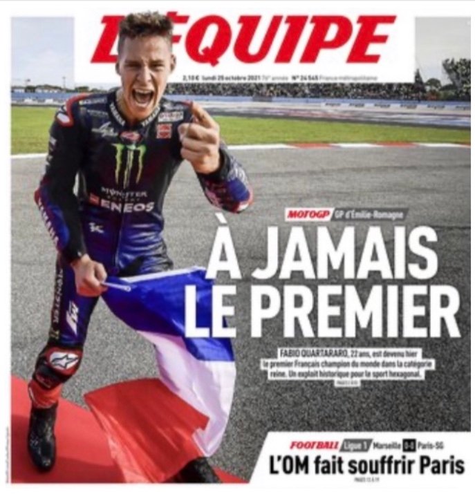 Ainsi s’exprime Fabio Quartararo au début de l’excellent ouvrage ‘El Diablo’ que lui a consacré notre confrère Rémi Boudoul Le 24 octobre 2021, Fabio Quartararo et sa Yamaha ont fait l’effet d’une véritable bombe dans le paysage des sports mécaniques.Une victoire gravée en lettres d’or dans la longue histoire des sports mécaniques et qui est le résultat d’un parcours tout à fait exceptionnel pour un si jeune motard.