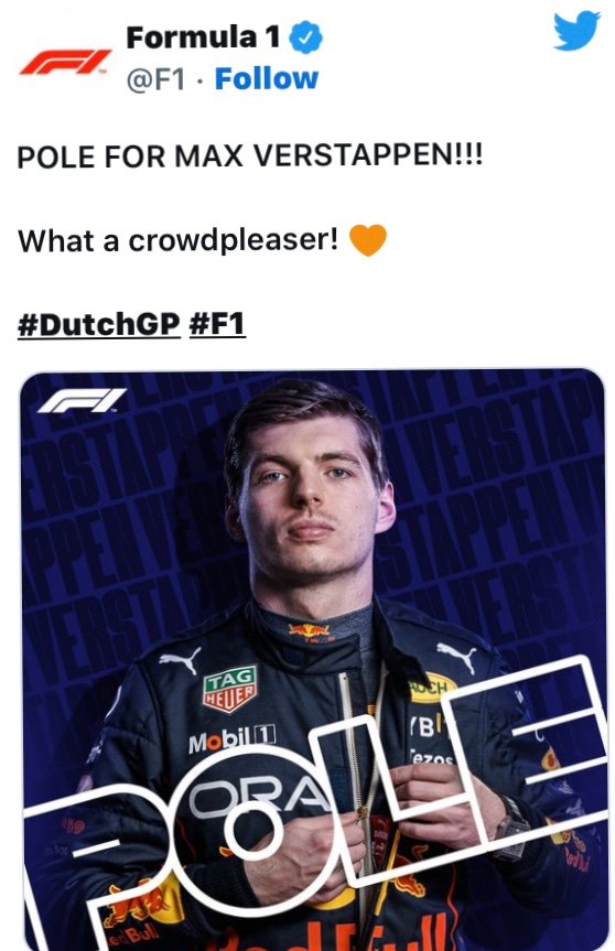 Il s’agit de la 17éme pole en carrière pour Max, sa seconde consécutive à Zandvoort aprés celle de 2021.Max qui expliquait :« C’est incroyable ! Surtout après la journée d’hier, on a très bien travaillé cette nuit pour renverser la tendance. Effectuer un tour lancé ici, c’est fou. Aujourd’hui, nous avions une voiture redevenue très agréable à conduire. La marge était très mince avec Leclerc, mais elle sera vitale en course.