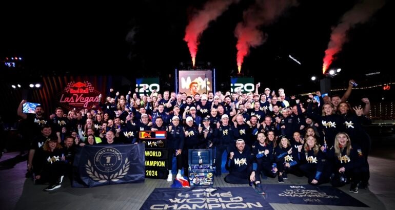 À ce jour au soir de ce Grand Prix de Las Vegas, le temple mondial des casinos situé au cœur du Nevada, Max Verstappen a disputé 207 Grands Prix, en a remporté 62 et en a signé 40 poles.Au total, il est monté sur le podium à 111 reprises, est parti depuis la première ligne dans 72 épreuves et a réalisé 33 tours les plus rapides en course.Avec les quatre Championnats du monde, il rejoint Alain Prost et Sebastian Vettel.Curieusement, l’Allemand les a également remportés consécutivement et tous avec …Red Bull ! François LEROUXPhotos : F1 – TEAM