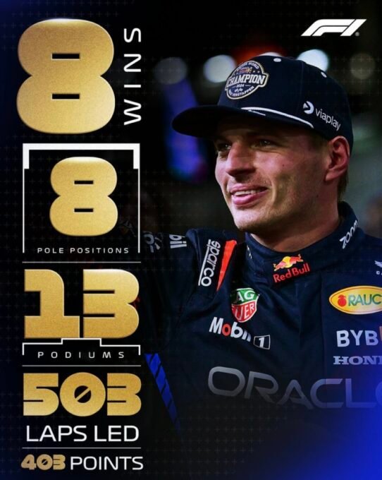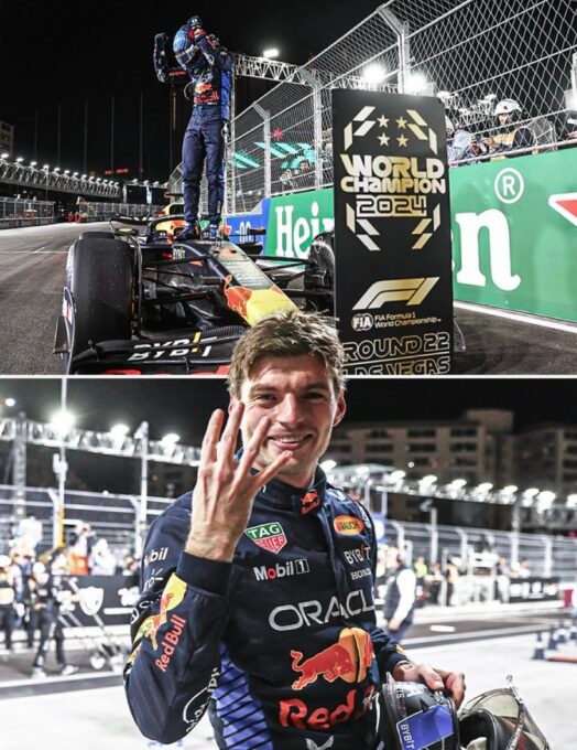 En décrochant ce dimanche 24 septembre – dans la nuit de samedi aux USA avec le décalage horaire entre le Nevada et la France, sa quatrième couronne et consécutive après ses sacres depuis son 1er titre obtenu en 2021 sur la piste de Yas Marina, lors du GP d’Abu Dhabi qui avait à l’époque créé une intense polémique, Max Verstappen rejoint au palmarès ,deux pilotes illustres, le Français Alain Prost et l’Allemand Sebastian Vettel, sacrés respectivement à quatre reprises en 1985, 1986, 1989 et 1993 pour le 1er cité et entre 2010 et 2013, pour le second !On voit ces statistiques impressionnantes de pilotes légendaires, et on espère juste monter sur un podium, gagner une course, peut-être un titre. C’est déjà tellement dur d’en gagner un… Je suis tellement fier de ces quatre titresEt il dépasse quatre autres stars de la Formule 1, avec trois titres.Ayrton Senna (1988-1990-1991), Niki Lauda (1975-1977-1984) Jacky Stewart (1969-1971-1973) et Jack Brabham (1959-1960-1966).