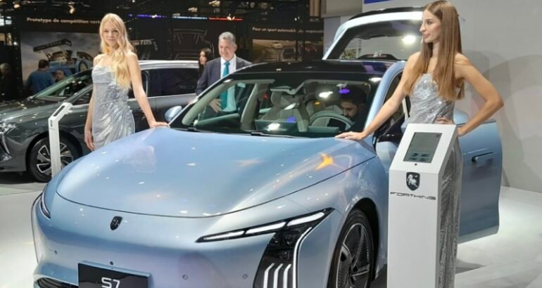 Pour commencer, mon expérience avec la Chine est assez limitée et se réduit à un séjour de trois semaines là-bas, il y a quelques années, lors du dernier China Grand Rally, que j’avais suivi pour Autonewsinfo à l’invitation du regretté Hubert Auriol qui dirigeait cette épreuve et dont je garde un souvenir ému, aux cotés incontestablement d’un Monsieur, avec un grand M, charismatique, brillant, sympathique, avec une présence, une voix, une prestance absolument incroyables.Une véritable légende si on y ajoute son palmarès sportif, tant en moto qu’en voiture, ayant gagné dans les deux cas le Paris-Dakar !Même si la taille du pays, ses paysages, ses monuments, son histoire millénaire méritent l’admiration, cette expérience m’avait laissé un arrière- goût amer, sans bien définir totalement pourquoi et pour être franc, pour rien au monde je n’irai vivre là-bas.Ceci étant dit, revenons au Salon de l’Auto de Paris et aux voitures qui y sont exposées et contrairement à ce que je viens d’écrire, je vais commencer avec une note très positive, qui va me valoir les foudres des féministes de tout bord, qui ne manqueront pas de me clouer au piloris…En effet, quelle belle surprise, dans un salon si futuriste et électrique, de me retrouver quelques dizaines d’années en arrière, devant le stand … Dongfeng Forthing, face à quatre magnifiques mannequins, tout aussi magnifiquement vêtues, aussi jolies que souriantes, à côté de leurs voitures, tradition sans doute très machiste et rangée aux oubliettes aujourd’hui, mais oh combien agréable !