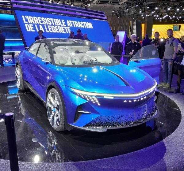 La bonne surprise du salon, la stand Alfa Romeo avec de l’électrique (la nouvelle Junior), de l’hybride (la Tonale) et du full thermique (la Stradale avec son V6 biturbo de 620 chevaux) un réel bonheur !De façon fort intelligente (à mon humble avis) Alfa Romeo, seul survivant italien au Salon de Paris, joue la carte de l’électrique, impossible à éviter vu la tendance actuelle et surtout la politique appliquée, qui oblige les constructeurs, au moins pour l’Europe, à bannir les moteurs thermiques pour 2035, mais garde un peu les pieds sur terre au cas où les politiciens ne soient obligés de revoir leur copie (ce qui arrivera assez prochainement), avec une gamme complète de motorisations, allant du diesel (mais oui !!), en passant par l’essence, l’hybride, l’hybride rechargeable et bien entendu l’électrique.En ce qui me concerne, c’est la gamme la plus complète et la plus intelligente au niveau des motorisations, sans oublier la griffe Alfa Romeo au niveau design, sans aucun doute mon coup de cœur du Qalon, pardon du MONDIAL.C’est plus fort que moi et même si la marque n’a pas que des qualités, j’aime ses calandres, ses lignes, son rouge, ses cuirs, son histoire et même les noms italiens de la plupart de ses modèles, Giulia, Giulietta, Stelvio, Tonale, Stradale, et mieux encore avec la griffe sportive de sa ligne Quadifoglio !ALPINE