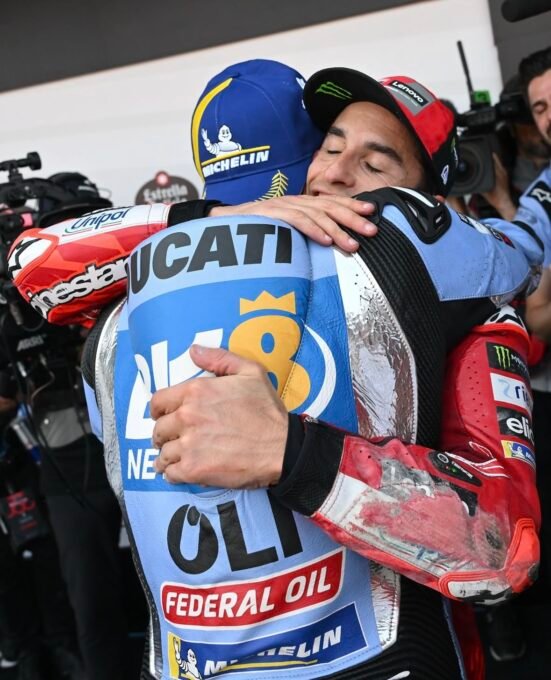Le vainqueur du jour fait du coup … coup double car il en profite pour s’emparer de la tête du classement provisoire du Championnat du Monde 2025 et ce … pour une simple et unique petite unité, précédant son frérot Marc Márquez.‘Pecco Bagnaia conservant lui, la troisième place, à 19 longueurs de son coéquipier.Rendez-vous dans deux semaines au Mans pour le Grand Prix de France !