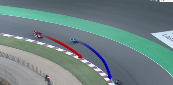 L’ERREUR DE MIR AU DERNIER VIRAGE (MONTAGE CORSE DI MOTO)[/caption] Mais Zarco et Bagnaia, nous l’avons démontré hier à bases d’images fixes capturées sur le GP, les deux Ducati ont gardé une trajo superbe au dernier virage où Mir fait un large à l’extérieur, les Ducati sont sur leur lancée à la corde, Mir a perdu le podium.Mais là, on est du côté des gens contents, en tous cas ceux qui sont sur le podium.Mais la loi mathématique est toujours cruelle, quand tu restes au pied de la stèle, tu fais la gueule alors les autres ! Revue des regrets…
