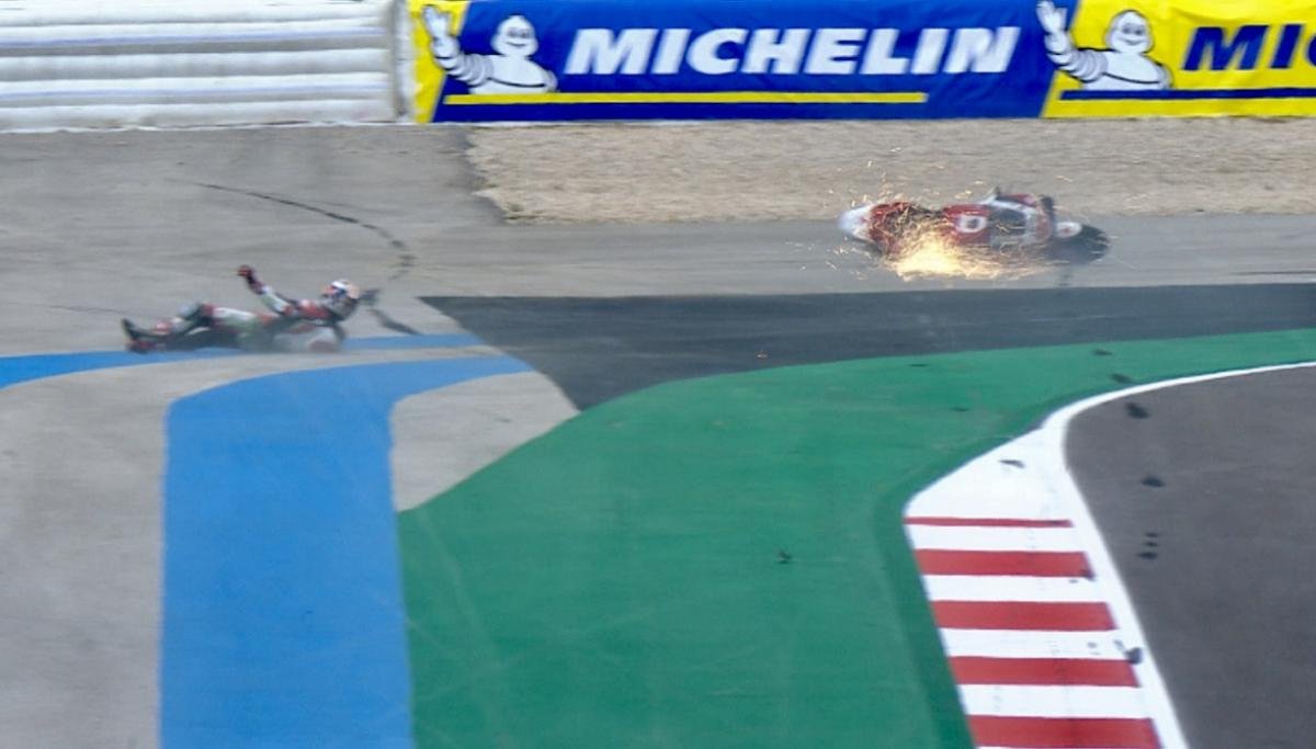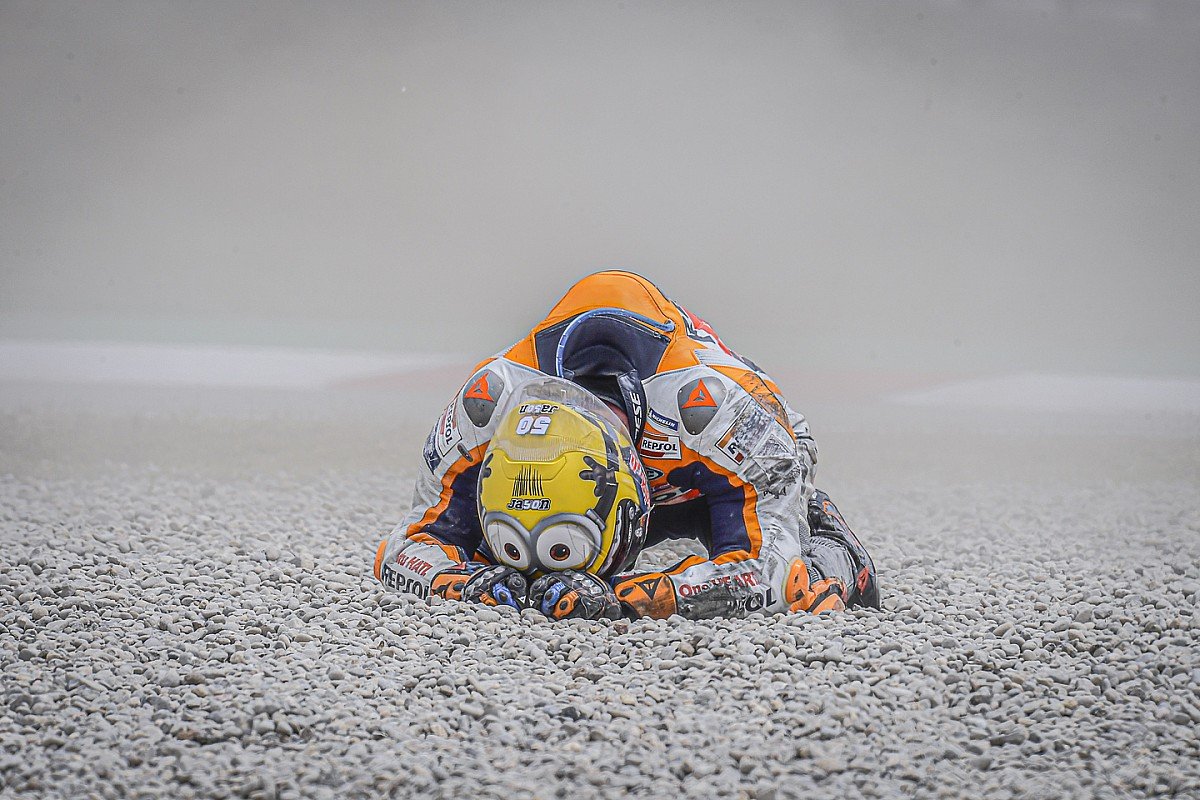 30% DU TOTAL DES CHUTES RIEN QUE POUR HONDA[/caption] Le truc dingue, Ducati n’a eu dans le même temps que 32 chutes… avec deux motos de plus en course ! Bref Honda s’est cogné 30% des chutes totales ! (137 au total pour la cylindrée…)Pol Espargaro 13 fois, lui qui disait comme un matamore en début d’année qu’il pouvait prétendre au titre (cela dit, je ne connais pas de pilote qui parte pour finir deux, d’où l’inutilité totale, chose que font pourtant nombre de mes confrères qui doivent faire de la ligne à la chaîne, avant le début des saisons ou la reprise après les vacances, de demander à chaque pilote ce qu’il veut faire et comment il se sent…) Pol dit aujourd’hui qu’il n’a plus confiance dans la moto et en effet, c’est une raison qui ne pousse pas à se dépasser et encore moins à le faire sur les autres…Pour l’instant dans le clan Honda pas de blessures importantes, mais je l’ai dit de ce côté on a donné !Marc Marquez est allé neuf fois au tapis. (Sans les deux GP du Qatar !) Il aurait eu cette phrase : « Chez Honda nous sommes les seuls à voler en l’air ! »Pas à dire, sachant qu’il s’agit de la marque la plus titrée en GP, ça fait mal au moral ! ANTIPATINAGE ZÉRO !