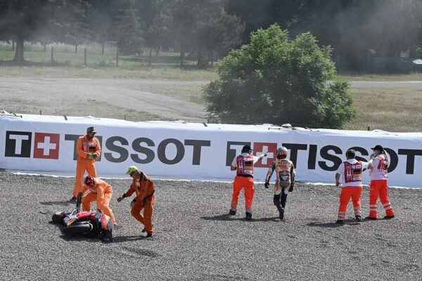 DANS LE TEAM LCR ON EST BEAUCOUP TOMBÉ AUSSI[/caption] Quand on pense qu’avant l’électronique unique celle de Honda coûtait à elle seule plus que toute la moto, quand on sait que dès cette annonce (j’ai dit à l’époque que c’est une connerie de diminuer les performances de sécurité en compète mais bon, on est passé de l’ère du chic à celle du cheap, c’était quand même autre chose) dès cette annonce donc Honda a recruté à prix d’or d’anciens ingés de Magneti Marelli, ce qui arrive est tout bonnement hallucinant !Parce que chez LCR, le team satellite, on a bien volé aussi comme dit Marc, son frère Alex a mesuré 10 fois la piste, Nakagami six fois ! [caption id="attachment_366748" align="aligncenter" width="600"]
