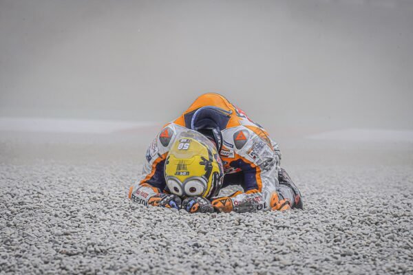 POL ESPARGARO LE PILOTE HONDA QUI VA LE PLUS AU GRAVIER[/caption] Et encore, il faut rappeler que Marc Marquez n’a pas commencé la saison dès le Qatar mais au Portugal, deux GP après le début de la saison !Qui plus est un grand nombre de ces chutes est survenu en high side, on connaît le triste principe, on perd l’arrière qui reprend soudainement du grip, le pilote se fait envoyer en l’air deux ou trois mètres au-dessus de la moto et le choc de retombée peut être terrifiant.Hors ça, en effet, c’est d’abord un signe que l’électronique est mal réglée ou inefficace, le high side doit devenir une vraie rareté…Non seulement Honda s’est collé 39 chutes mais ses quatre pilotes sont ceux qui ont le plus mesuré la piste avec les bras… (Expression de motocross, moins effroyable que le vocabulaire de la vitesse). [caption id="attachment_366739" align="aligncenter" width="600"]