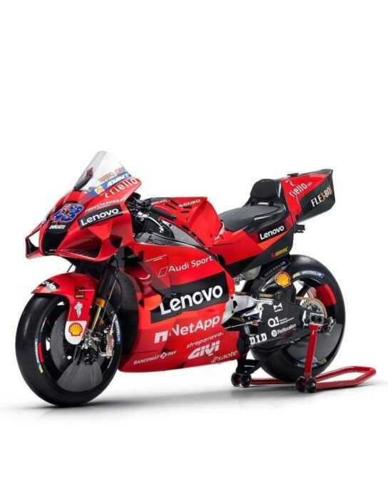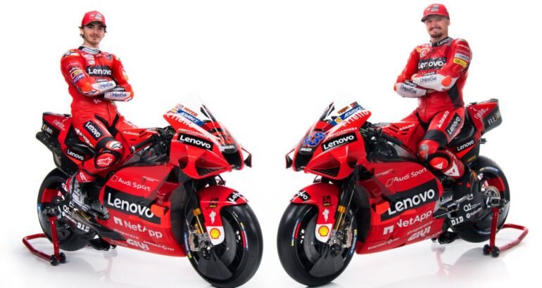 On a vu aussi, et les invités en ont parlé tout le temps, que la robe des motos était très rouge, c’est la marque de fabrique de la maison et on a voulu revenir aux fondamentaux, c’est une bonne idée d’autant plus que le rouge est la couleur officielle des autos ou motos italiennes qui courent en compète, même si l’usage s’est un peu perdu…Et puis il y a le nouveau sponsor, Lenovo, qui a beaucoup de cash puisqu’il vend des ordinateurs, activité très lucrative.Il a dû en lâcher un max pour qu’on le voie partout et en énorme sur la moto, pas grave, le rouge est là…Lenovo prend la place de Mission Winnow, l’ancien sponsor.Tout Ducati va bientôt aller rouler, bien avant le premier GP au Qatar en mars, mais seul Pirro pourra piloter le proto, les autres auront droit aux très puissantes Panigale V4S.Ce qui est sûr c’est qu’ils vont s’attrouper autour du proto quand il roulera pour voir comment il réagit.Les deux coéquipiers se connaissent bien car ils ont roulé ensemble ces deux dernières saisons chez Pramac, l’écurie satellite de Ducati Corse.Au cours de la présentation, Gigi Dall’Igna qui manage l’équipe a indiqué: « Il y a des moments où un changement est nécessaire et je pense que c’était le bon moment . Nous misons sur deux jeunes pilotes qui ont tout de même une grande expérience avec Ducati, il y a donc une certaine continuité sur ce point. Je crois beaucoup dans leur talent.»Voilà, les premiers essais sur la piste de Losail au Qatar approchent, c’est dans un petit mois, on entend presque le vroom vroom des motos qui étaient sur scène ce mardi 8 février, avec leurs cavaliers.Esponsorama a tiré le premier pour les présentations, Ducati est le deuxième, c’est parti, tout le monde va le faire en février…Ces naissances, c’est bon comme le pain chaud…