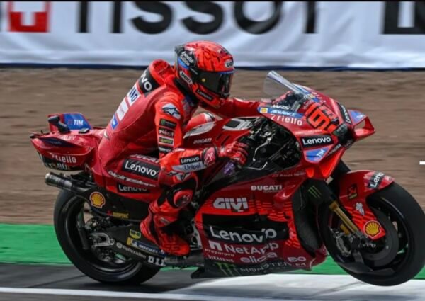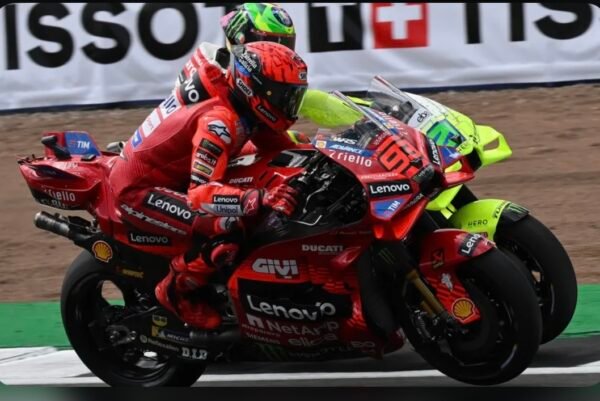 À la relance pour les 19 tours restants, Francesco ‘Pecco Bagnaia, l’autre pilote ‘Usine chez Ducati Lenovo, s’offre le holeshot devant Fabio Quartararo, qui repasse en tête quelques virages plus tard.