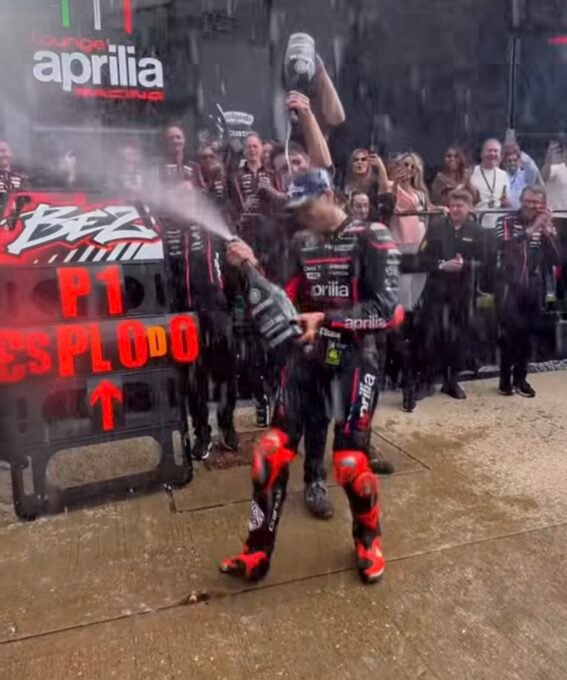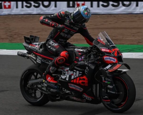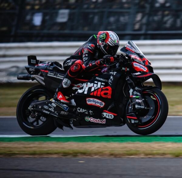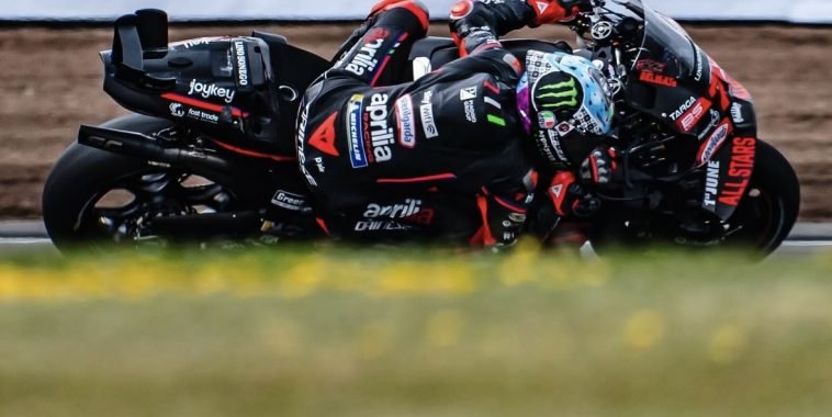 Le pilote Aprilia a opté pour la bonne stratégie et a également bénéficié d’un coup de pouce du destin après l’abandon cruel du leader, le pilote Français de Yamaha qui survolait ce GP de Grande Bretagne sur ennui mécanique