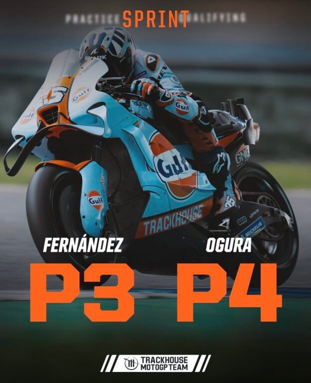 Derrière, on assiste à un duel 100% Aprilia entre Jorge Martín d’Aprilia Racing et Ai Ogura qui dispose lui de l’une des Aprilia ‘ privée du Team US Trackhouse MotoGP.