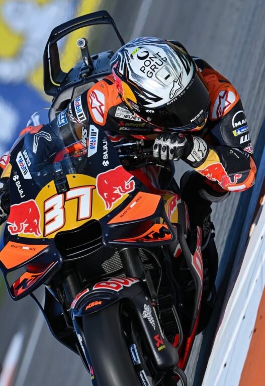 Le pilote Espagnol de la KTM N°37 décroche le meilleur chrono de la session vendredi après-midi 14 novembre 2025, devant Marco Bezzecchi à 0.053 et Franco Morbidelli, à 0.185