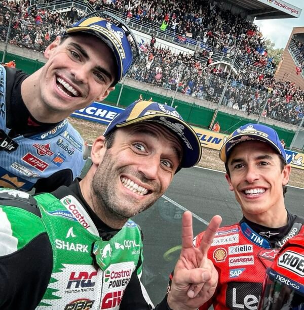 À noter que l’autre pilote officiel Ducati ´Pecco Bagnaia est lui aussi tombé mais s’il a pu repartir il ne se classe que loin au … seizième rang !Zarco a pris la tête au cinquième des vingt sept tours de ce GP de France.Johann triomphe pour la seconde fois en MotoGP après son premier succès obtenu a Philip Island au GP d’Australie en 2023Rappelons encore que Johann Zarco a été deux fois sacré Champion du monde mais en catégorie Moto2 en 2015 et 2016.Sa première parole ? C’est magique ! Et cerise sur le gateau il gagne sous les yeux de sa maman venue assister pour la toute 1ere fous a un GP