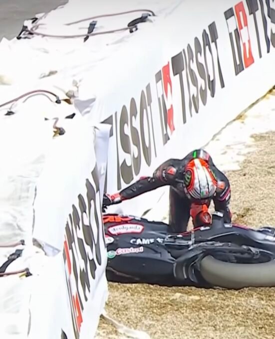 Le Turinois peut s’estimer heureux puisque dans son dernier tour lancé, son coéquipier Marc Márquez, le second pilote ‘Usine de Ducati Lenovo, était largement en avance mais le N°93 a, alors chuté au virage 14 quelques secondes après Johann Zarco avec sa LCR Honda.