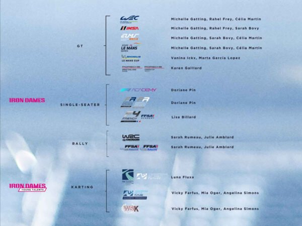 Le projet ‘Iron Dames est désormais fier de soutenir 16 pilotes, ce qui représente une avancée significative dans la promotion des opportunités pour les femmes à tous les niveaux de la pyramide compétitive du sport automobile. Du karting aux Championnats mondiaux, la présence des ‘Iron Dames dans …18 séries différentes couvre tout le spectre des disciplines de course.2.La force de la diversité