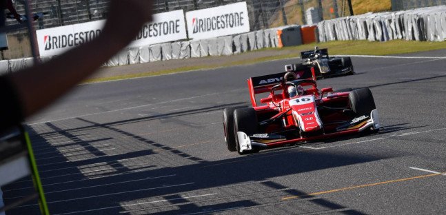 1 – Tomoki Nojiri (Dallara-Honda) Mugen les 30 tours en 56’53″0472 – Ryo Hirakawa (Dallara-Toyota) Impul à 1″4523 – Ukyo Sasahara (Dallara-Honda) Dandelion à 4″1864 – Yuhi Sekiguchi (Dallara-Toyota) Impul à 9″9145 – Hiroki Otsu (Dallara-Honda) Mugen à 10″5216 – Ritomo Miyata (Dallara-Toyota) Tom’s à 11″8547 – Sho Tsuboi (Dallara-Toyota) Inging à 14″7778 – Naoki Yamamoto (Dallara-Honda) Nakajima à 14″7809 – Giuliano Alesi (Dallara-Toyota) Tom’s à 15″10310 – Toshiki Oyu (Dallara-Honda) Nakajima à 16″30211 – Sena Sakaguchi (Dallara-Toyota) Inging à 19″10712 – Kenta Yamashita (Dallara-Toyota) Kondo à 21″44213 – Nobuharu Matsushita (Dallara-Honda) B-Max à 22″18314 – Yuichi Nakayama (Dallara-Toyota) Kondo à 22″65215 – Kazuya Oshima (Dallara-Toyota) – Rookie à 24″37916 – Kazuto Kotaka (Dallara-Toyota) – KCMG à 25″91517 – Tatiana Calderon (Dallara-Honda) Drago Corse à 29″363 MEILLEUR TOUR: Hiroki Otsu, en 1’40″417 ABANDONS15° giro – Yuji Kunimoto10° giro – Nirei Fukuzumi [caption id="attachment_357517" align="aligncenter" width="800"]