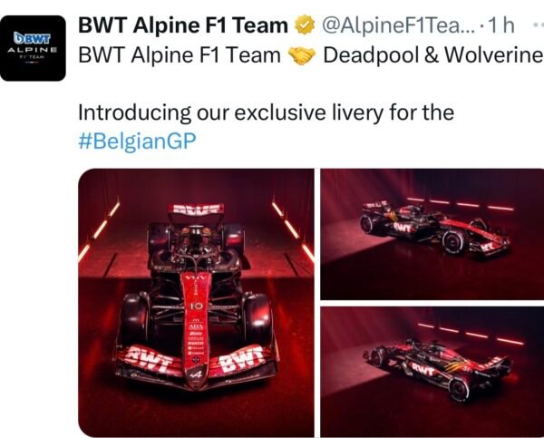 Après l’annonce ce mardi 23 juillet 2024 proprement scandaleuse de l’abandon en Grand Prix F1 par l’écurie Française Alpine du moteur Renault à partir de 2026 et qui est unanimement condamné… histoire de tenter de faire passer cette information aux oubliettes, l’équipe ‘ Bleue indique ce mercredi que ses deux monoplaces Alpine A524 se présenteront ce week-end pour le GP de Belgique à Spa avec une livrée aux couleurs du film Deadpool et Wolverine.Et ce afin de fêter et célébrer la sortie du film Deadpool et Wolverine, avec Ryan Reynolds, l’un des actionnaires de l’équipe tricolore en GP F1.