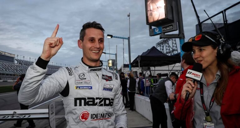 24 HEURES DAYTONA 2020 Oliver JARVIS offre la pole au Team MAZDA le 23 janvier.—[/caption] Jarvis précéde le Colombien Juan Pablo Montoya, qui pilote lui l’une des deux Acura ARX-05 du Team Penske, avec le Français Simon Pagenaud et l’Américain Dane Cameron et second avec 1’34.154 à 0.443 et la voiture-sœur, l’autre Mazda, RT24-P la N°55, pilotée par Jonathan Bomarito qui fait équipe lui avec Ryan Hunter-Reay et Harry Tincknell et réalise le 3éme temps avec 1’34.169, à 0.458Ensuite, on pointe avec 1’34.294, à 0.583, le Brésilien Felipe Nasr et la 1e des Cadillac DPi-V.R, la N°31 du Wheelen Engineering Racing que piloteront ave lui en course, Pipo Derani, Felipe Albuqueque et Mike Conway ;Le Top 5 étant complété par une autre Cadillac, celle du Wayne Taylor Racing confiée à l’Australien Ryan Briscoe qui roule avec Scott Dixon, Kamui Kobayashi et Renger van der Zande et crédité de 1’34.442, à 0.731.