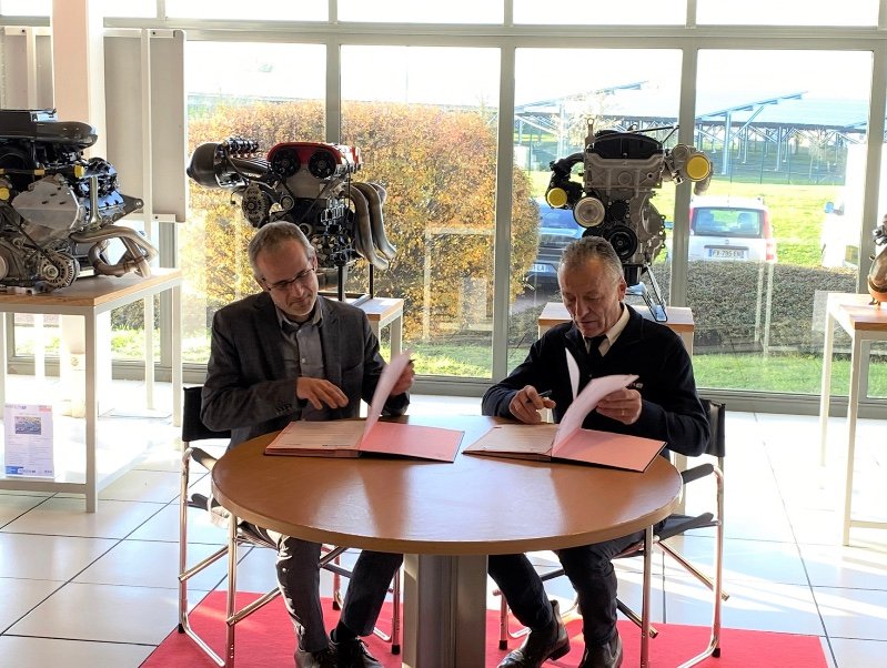 Le Président de l’ISAT (Institut Supérieur de l’Automobile et des Transports) de Nevers Thomas Paviot et Serge Meyer d’ORECA se sont rapprochés en vue de conclure un accord de partenariat portant sur « la Motorisation à combustion interne H2 »Entre autres, dans le Domaine pédagogique : (cadre d’un stage en sujet avec le développement d’un moteur à combustion interner H2 pour étudiant.e de 5ème année) – encadré par un enseignant-chercheur, dans le domaine de la simulation des écoulements et/ou des échanges thermiques, permettant de comprendre et d’optimiser les caractéristiques de la combustion.Ce projet sera mené au cours de l’année scolaire 2023/2024.ORECA participera chaque année au forum entreprise organisé à l’automne par l’Institut.Alors, qu’ajouter ?Affaire à suivre…Mais connaissant le sérieux et l’expérience de la prestigieuse maison ORECA, on peut être assuré et rassuré que cet ambitieux projet, sera une réussite ! Gilles GAIGNAULT Photos : Pierre SIMENEL ET POLE VEHICULE DU FUTUR