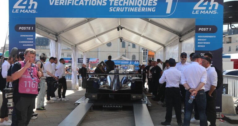 Et comme chaque année c’est au cœur du Mans et désormais sur la Place de la République qui a remplacé celle des Jacobins, sujet à des transformations et une modernisation qu’à débuté ce pesage qui concerne d’une part les vérifications administratives, celles des équipements complets des pilotes et aussi d’autre part les vérifications techniques des voitures.