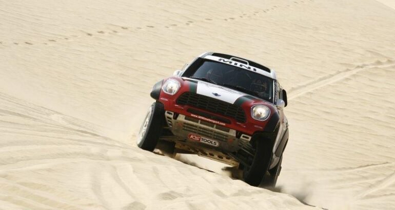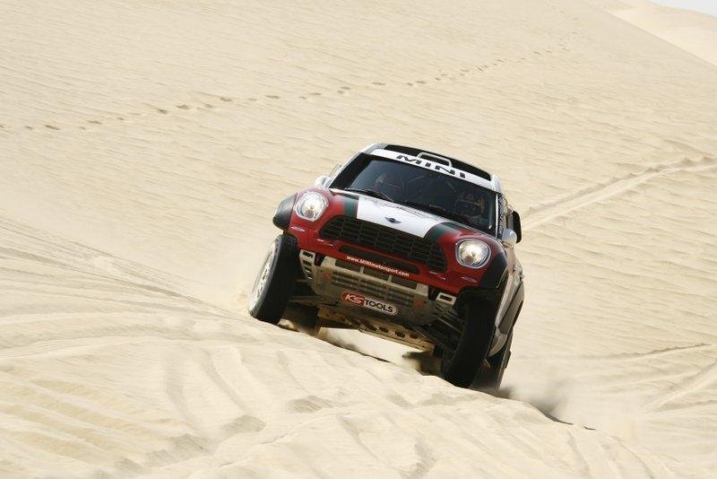 SCHLESSER EN OUVERTURE[/caption] Alors que Schlesser est parti le premier, ayant gagné la spéciale hier, quatre minutes devant Al Mutaiwei, le byggy bleu tient la cadence en début de course.Pas facile car derrière, on voit sa trace, sa poussière, quand il ouvre la piste, ce qui facilite la chasse.Toujours cette connerie de règle, enfin terminée en Championnat du Monde des Rallyes, qui fait ouvrir par le vainqueur de la veille, position toujours défavorisante.Il serait logique que le vainqueur choisisse justement son numéro de départ dans les dix premiers…Puis, c’est normal, la Mini grignote…Au CP 4 en revanche Schlesser passe avec quinze minutes de retard.Jean Louis raconte:« Nous sommes arrivés dans une cuvette trop fermée: le Buggy a tapé à l’avant et il était coincé au point de nous faire démonter une roue et de monter la voiture sur les vérins. Pour éviter de s’empiler, Konstantin (Zhiltsov) est allé poser son casque au sommet de la cuvette, sans quoi Khalifa venait nous y rejoindre comme l’ont fait deux pilotes à moto… » Pépin bien sûr, dont Jean Louis, évidemment en colère, rattrappe un peu les conséquences en réduisant l’écart à neuf minutes en bout de spéciale.Mais cela veut dire quand même que ces minutes vont très très compliquées à reprendre… Car au total, il y a maintenant 15 minutes entre les deux autos. [caption id="attachment_62754" align="aligncenter" width="600"]