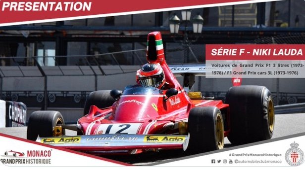 La Série F répertorie les F1 de 1973 à 1976 et salue l’Autrichien Niki LAUDA qui obtint 2 victoires en 1975 et 1976 sur les Ferrari 312 T de 3 litres et fût 2 fois 2ème en 1977 et 1978. Il aura donc fallu attendre deux décennies pour que la marque au fameux « Rosso Corsa » retrouve la plus haute marche du podium Monégasque après la victoire en 1955 de ‘Pétoulet’ alias Maurice Trintignant, le Français de VERGEZE dans le GARD .A noter que les deux FRANÇAIS, Jean ALESI et René ARNOUX, anciens pilotes officiels et vainqueurs en GP pour la Scuderia, prendront le départ sur des Ferrari 312B3, celle de Niki Lauda pour notre Avignonnais et retrouveront le plaisir d’une compétition toute amicale à cette occasion.17 voitures avec des Amon AF 101, Ferrari 312 B3, Lola 370 T, Mac Laren M26, Hesketh 308B, Ombre et Lotus 77.