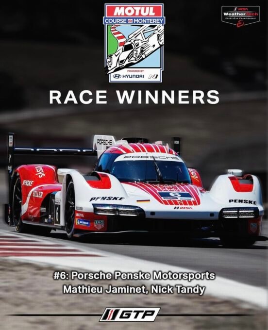 Sur la piste de Laguna Seca à Monterey en Californie, l’équipage de la Porsche 963 N°6 du Porsche Penske Motorsport, l’emporte en s’imposant dans cette quatrième manche de la saison 2024 de l’IMSA WeatherTech SportsCar ChampionshipLa Porsche 963 N°6, précédant la 1ère Cadillac V-Series.R, la N°31 de l’écurie Whelen Action Express Racing, grâce à un dépassement dans l’imposant trafic avec toutes les voitures GT, de Nick Tandy face à Jack Aitken en toute fin de course alors qu’il ne restait plus que dix minutes avant le drapeau à damier !