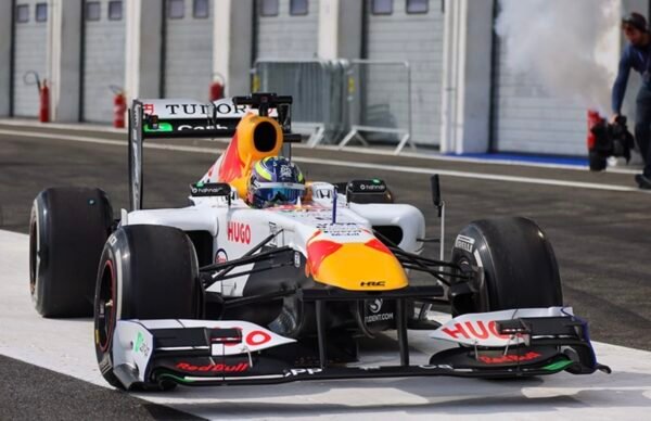 Face à Loeb, l’étoile montante de la F1, l’immense espoir qu’est le jeune tricolore Isack Hadjar dans sa monoplace de GP, la Racing Bulls.