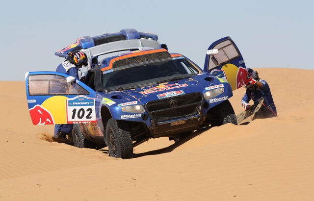 À la sortie d’un erg, alors que deux de ses coéquipiers et adversaires — Sainz et Al Attiyah — avaient raté un virage et qu’il avait repris la tête du groupe, son Touareg est parti en tonneaux par l’avant. !