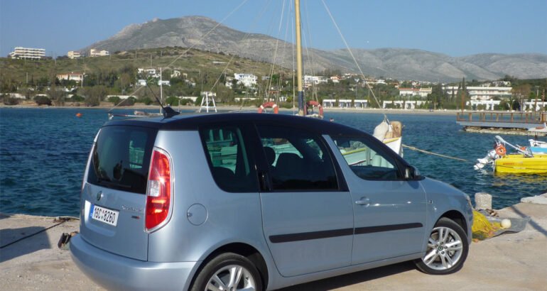Le bord de mer au sud d’Athènes, en longeant la Méditerranée en direction du cap Sounio, est un itinéraire toujours appréciable, surtout quand le soleil est de la partie, et le Roomster se montre à son avantage dans les grandes courbes de la côte puis dans les virages un peu plus serrés des collines alentours.