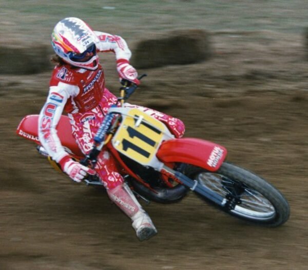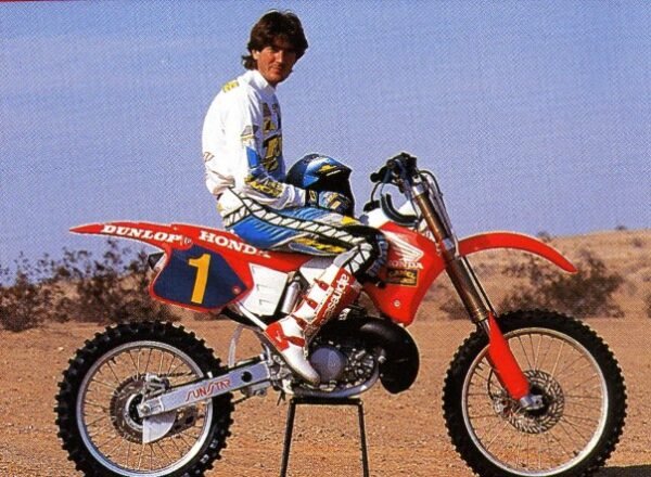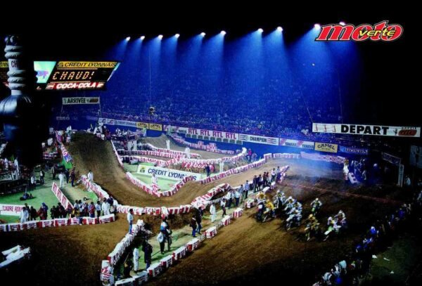 JMB :« Et puis il y a eu vous aux Editions Larivière, toi, Pat Boulland, Xavier Audouard qui avez commencé à faire plein de papiers sur les USA et le Supercross, en stade donc. J’avais treize ans quand la mode US a commencé… J’en avais déjà envie en fait mais c’est surtout la création du Supercross de Bercy qui a fait que j’ai rencontré les héros US. Toi tu lançais ton fameux « Bonsoir Paris ! »et ça devenait magique. J’ai fini par le gagner ce SX de Bercy. Pat Boulland qui connaissait bien Roger de Coster (un pilote belge cinq fois champion du monde qui est ensuite parti aux USA apprendre à rouler à ceux qui deviendront des héros) et qui était devenu team manager de Honda USA, Pat donc l’appelle tout le temps pour lui parler de moi. Roger est venu me voir courir en GP outdoor et a bien aimé ce que je faisais. La première année de mon arrivée aux USA je gagne quand même cinq épreuves et l’année suivante je suis champion ». [caption id="attachment_362275" align="aligncenter" width="600"]