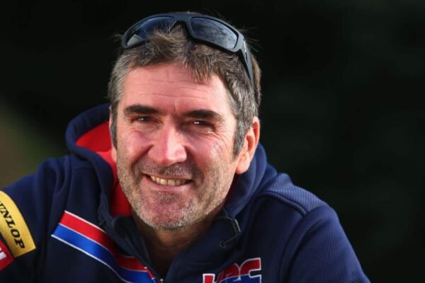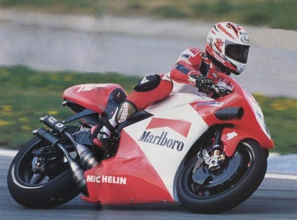 KENNY ROBERTS EN DIRT[/caption]Il a raconté Roberts à Christian Batteux, de Moto Revue.« C’est un mec exceptionnel pour lequel j’ai un immense respect. L’Américain dans toute sa splendeur, caricatural, dur, exigeant, mordu de compétition même une fois sa carrière finie. Il avait gardé son tempérament de pilote. Il était capable de te traiter (gentiment) d’enculé le matin et de te prendre dans ses bras dans l’après-midi après que tu as fait une belle perf’ aux qualifs ! C’est sûr, la langue de bois c’était pas son truc. Ce qu’il aimait, c’est faire progresser ses pilotes, les amener aux marches des podiums… Et c’était le seul manager qui puisse monter sur une moto et te mettre une branlée sur une piste de dirt ! Il nous avait taxés Junior (son fils) Capirossi et moi en Espagne, sur son anneau, avec des XR 100 ; Loris avait dit : “Ouais, mais Kenny toi t’as un meilleur pneu avant que nous…” Et Kenny lui a répondu : “Quand t’auras 50 ans et mon palmarès, tu pourras peut-être avoir un meilleur pneu avant !” L’aventure Modenas, c’était osé. En huit mois, la moto marchait déjà très bien. La première fois qu’on l’a démarrée, tout le paddock était devant notre stand ! J’ai fait des premières lignes à son guidon, pour les gars du team c’était comme une victoire. Alors bien sûr, ça n’a pas été très loin, mais il fallait déjà le faire…Il commence la vitesse par le 250, où il roule avec Aprilia, puis monte en 500 avec Yamaha puis avec Roberts sur la Modenas.Ce n’est pas terminé !Il a envie d’endurance, il va gagner ET les 24 Heures du Mans ET le Bol d’Or (deux fois)… [caption id="attachment_362279" align="aligncenter" width="600"]