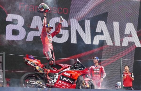 Au terme d’un Grand Prix relativement calme, Francesco ‘Pecco Bagnaia, l’officiel Ducati Lenovo, décroche la 23ème victoire de sa carrière dans l’élite devant le leader du classement général provisoire, l’Espagnol Jorge Martín au guidon de la Ducati du Prima Pramac Racing ainsi que son propre partenaire Enea Bastianini, le second pilote officiel Ducati Lenovo.