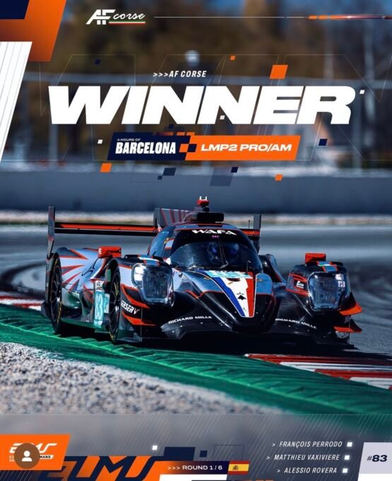 .ELMS 2024 – Seconde place aux 4 Heures de BARCELONE à CATALUNYA ce dimanche 14 avril pour l’ORECA 07 de l’équipe Française TDS en LMP2/Pro Am – Photo : Antoine CAMBLOR[/caption] L’Oreca N°83 de la Scuderia AF Corse, sacrée en 2023 et détentrice du titre, a dominé la course. Les duettistes Français François Perrodo et Mathieu Vaxiviere, qu’épaule le transalpin Alessio Rovera, l’un des pilotes officiels de Ferrari, se sont montrés particulièrement brillants lors de leurs relais respectifs.Ils triomphent en devançant l’Oreca N°29 du Richard Mille by TDS, de Rodrigo Sales, Mathias Beche et Grégoire Saucy. VICTOIRE DE LA LIGIER DU TEAM VIRAGE EN LMP3