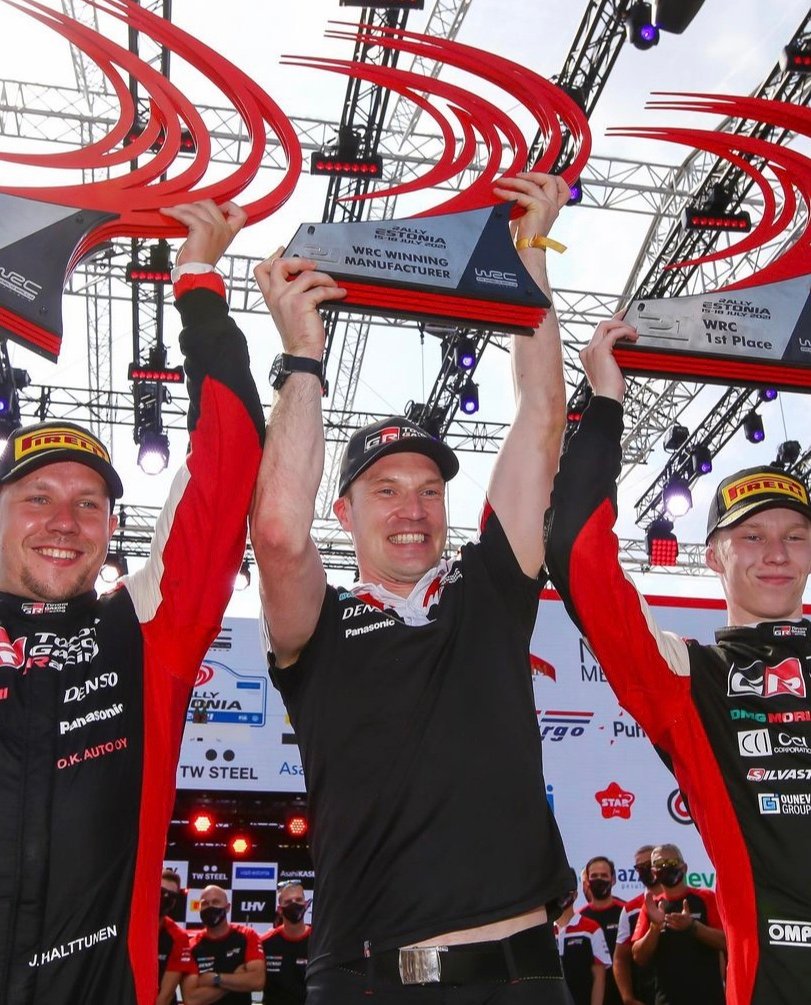 LES VAINQUEURS AVEC JARI MATTI LAVALA[/caption] Jari-Matti Latvala, ancien pilote devenu l eDirecteur de l’équipe Toyota :« C’est une journée incroyable aujourd’hui et une victoire record à plus d’un titre. Chaque victoire est spéciale et agréable mais, pour moi, voir la première victoire de Kalle aujourd’hui a une grande signification. Je suis si heureux qu’il devienne le plus jeune pilote à avoir remporté un rallye WRC et qu’il me prenne le record : il perpétue la tradition finlandaise, après qu’Henri Toivonen l’ait détenu avant moi. Il a fait un travail fantastique ce week-end. Remporter notre cinquième victoire consécutive – un record pour Toyota – est également incroyable. C’est quelque chose d’unique et de spécial que nous avons fait lors de ces dernières courses. Il y a encore un long chemin à parcourir dans les deux championnats, mais je suis particulièrement fier de l’équipe et des pilotes. »