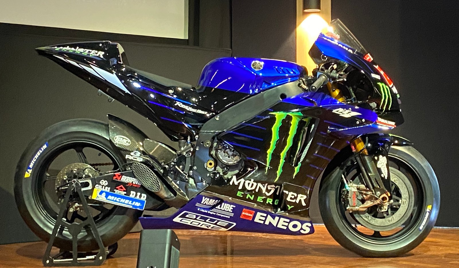 Photo: Gilles VITRY Avec à tout ´Seigneur’ tout honneur le Champion du monde en titre, sacré au guidon de sa Yamaha – exposée sur la scène -le Français Fabio Quartararo!