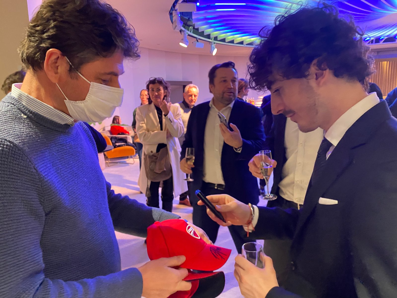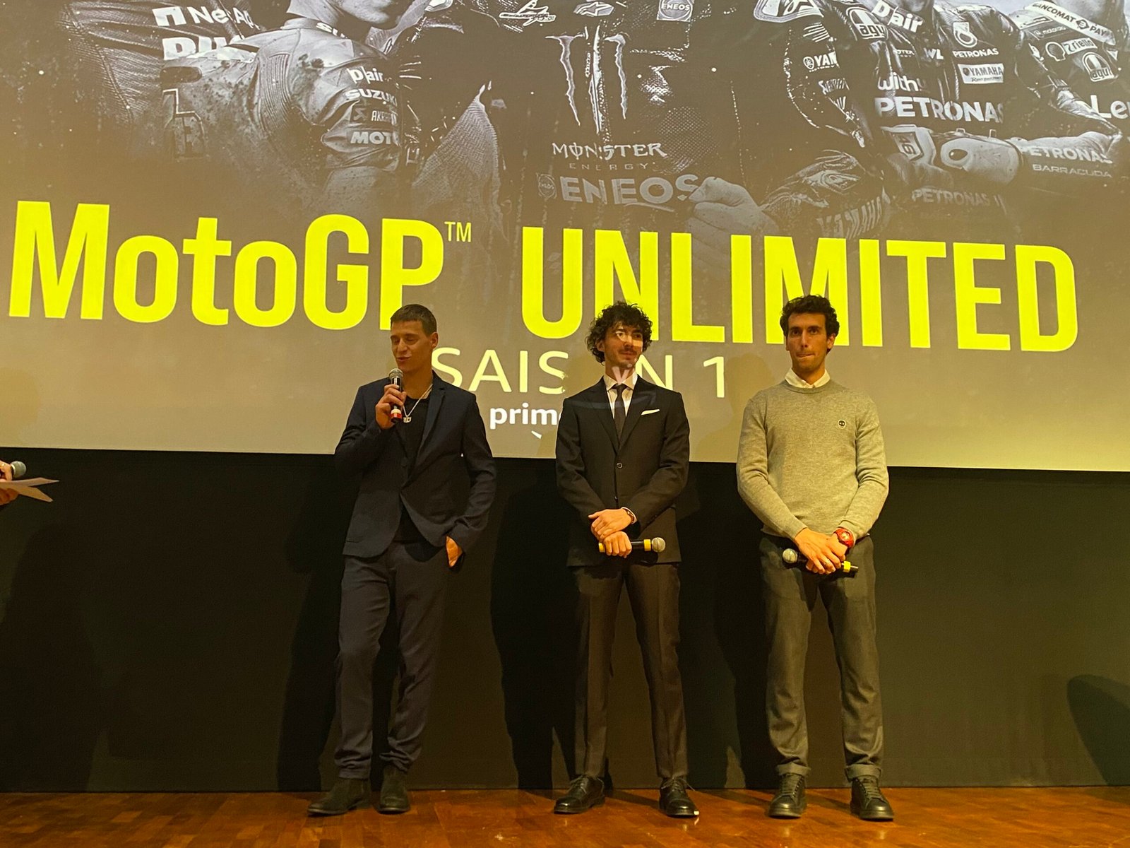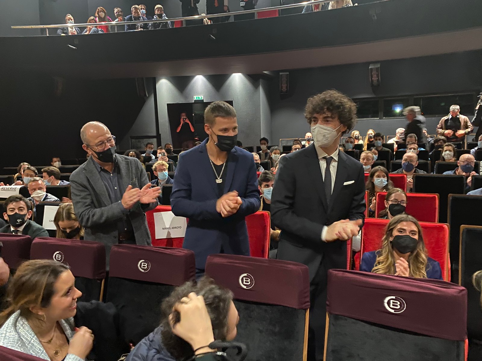 Photo : Gilles VITRY Venu assister à cette projection, accompagné entre autres du vice champion du monde, le pilote Italien de Ducati, Fransesco ´Peco’ Bagnaia.Avec eux, également présent, le partenaire du Champion du monde 2021, Joan Mir, son compatriote, l’Espagnol de l’équipe Suzuki, Alex Rins. Gilles GAIGNAULTPhotos : Gilles VITRY