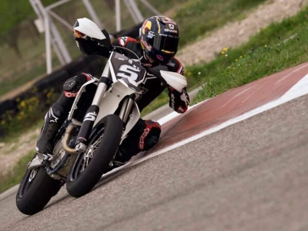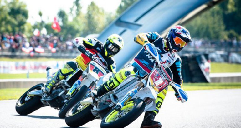 En France on l’a appelé Supermotard mais la FIM l’appelle Supermoto, la discipline se court sur des motos très puissantes avec des pneus sculptés à la main, l’avant est plus bas que l’arrière pour faciliter la mise en angle et justement les angles pris en courbes sont impressionnants.Peu importe, le mondial par équipes a été remporté par les Français à six reprises, l’objectif est donc clair, le septième.Cette discipline sert aussi d’entraînement aux pilotes de Grands Prix ou de Superbike qui prennent des angles hallucinants, ça les amuse et c’est un superbe moyen de rouler en dehors des essais et des GP. [caption id="attachment_357016" align="aligncenter" width="600"]