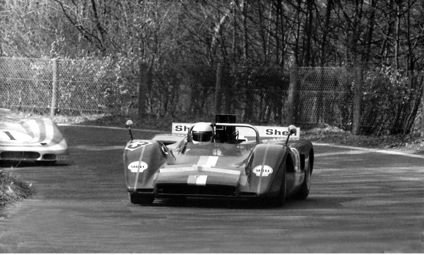 Au volant d’une surpuissante CAN/AM[/caption] Attentif à son talent, le célèbre Comte Belge, Rodolphe Van der Straten-Ponthoz, l’engagea ensuite sous les couleurs de son Team VDS dans les séries INTERSERIES, F 5000 et TASMAN sur ses LOLA T70 ou Mc LAREN M8C, aux volants desquelles Teddy PILETTE s’illustra régulièrement comme au Nürburgring, aux Coupes ACIF en France ou aux 500 KM de Vila Real en Espagne.En 1973 et 1975, il sera couronné Champion d’Angleterre sur des CHEVRON B24, Mc LAREN M18 et LOLA T400 aux couleurs rouges avec la célèbre bande bleue et blanche du Team VDS. [caption id="attachment_401495" align="aligncenter" width="828"]