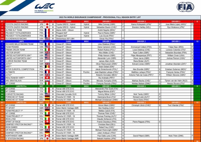 LE PLATEAU EN 2021 AU DÉPART DES 24 HEURES DU MANS – Photo : WILLY CHANTELOUP[/caption] 39 voitures seront en piste cette saison pour la 10eme année depuis la création du Championnat du monde d’endurance WEC, dont Peugeot qui avait justement quitté le monde de l’endurance en janvier 2012 et ce lors de la naissance du WEC ! Peugeot qui revient dans la discipline et rejoint LMHLa dixième saison du WEC s’apprête à être une édition passionnante avec 39 voitures qui prendront le départ de l’ensemble du Championnat.Outre la venue de Peugeot dans la catégorie LMH, il y aura aussi la présence enfin d’une Corvette en LMGTE Pro.Et comme le veut la tradition, c’est encore la catégorie LMP2 qui sera la plus représentée, avec 15 prototypes au départ ! [caption id="attachment_368442" align="aligncenter" width="828"]
