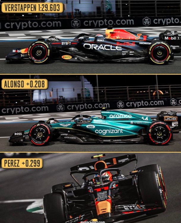 Perez espérait mener le combat contre Verstappen pour cette deuxième séance… Mais c’est Verstappen – qui a également dominé les feuilles de temps comme en FP1 et qui a ouvert la voie dans les simulations de qualification habituelles desFP2, établissant un temps de 1’29.603, avec son challenger le plus proche, un certain… Alonso, son plus proche rival finalement crédité de 1’29″811 à 0.208 derrière, avec le poleman de l’année dernière, Perez, troisième plus rapide, avec 1’29″902, à 0,299 de son coéquipier’