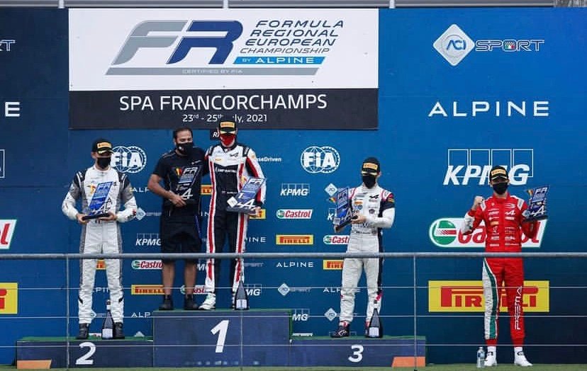 Pole converti en victoire pour Belov[/caption] Après une pole position exceptionnelle, sa toute 1ére le Russe Michael Belov remporte sa première course en Formula Regional by Alpine et apporte également le premier succès à son équipe, le G4 Racing.Un départ parfait dans des conditions météo exécrables et aussi une belle relance après la voiture de sécurité, ainsi qu’un rythme époustouflant, donnent une belle victoire et une réussite au pilote Russe qui s’impose avec plus de 9 secondes sur son plus proche poursuivant, le Français Hadrien David de l’équipe R-ace GP, qui parvient à dépasser son coéquipier, le pilote de l’Ile de La Barbade Zane Maloney à deux tours du damier ! [caption id="attachment_366487" align="aligncenter" width="800"]