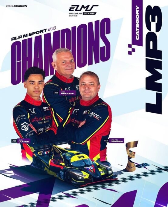 La course au titre LMP3 s’est déroulée entre trois voitures :la N°11 Eurointernational, la N°8 Team Virage et la N°15 RLR MSport, avec seulement deux points séparant les trois équipes.La course au titre s’est également jouée dans les derniers tours. La Ligier N°17 du Cool Racing des Portugais Miguel Cristóvão et Manuel Espirito Santo, a profité de sa pole position pour mener la course dans les derniers tours et décrocher sa première victoire de la saison 2024.C’est le suspense qui a tenu tout le monde en haleine. Adam Ali, au volant de la Ligier N°11 d’Eurointernational, était en deuxième position et en bonne voie pour remporter le titre. La Ligier N°8 de Team Virage pilotée par Gillian Henrion restait au contact d’Ali, mais un accrochage avec la Ligier N°88 d’Inter Europol Competition, alors pilotée par Pedro Perino a fait chuter la Ligier N°8 à la sixième place hors course pour le titre.Cependant, Ali a dû faire face à un autre danger alors que la Ligier N°15 du RLR MSport de Gael Julien remontait dans le peloton.En effet avec moins de quinze minutes au compteur, Julien a rattrapé le Canadien et au virage 14, il a dépassé la Ligier N°11 pour s’emparer de la deuxième place.Sous le drapeau à damier, la Ligier N°17 du Cool Racing possédait dix secondes d’avance sur la Ligier de RLR MSPort, Eurointernational s’assurant la dernière place du podium.Le trio, Michael Jensen, Nick Adcock et Gael Julien a célébré leur titre Européen LMP3 2024 sur le podium. LMGT3