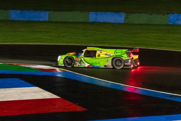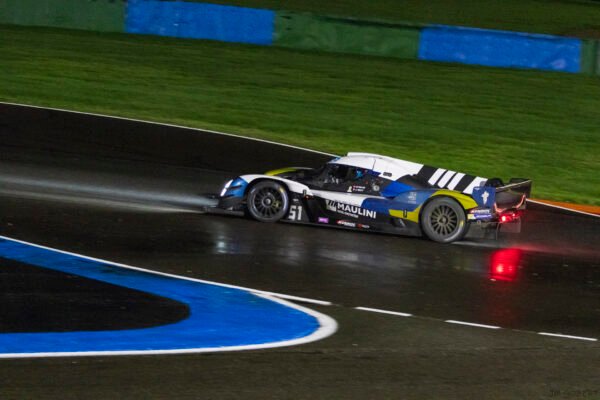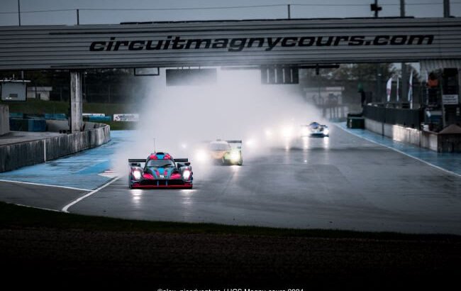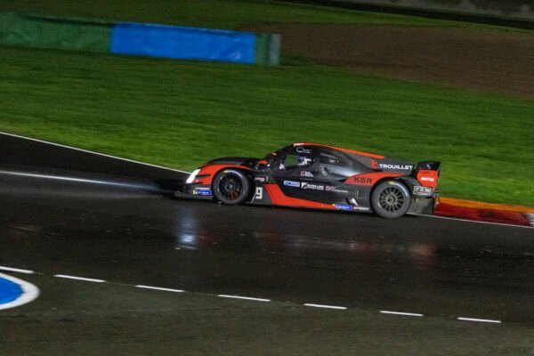 CD SPORT N°4 de Maxence Maurice, Louis Maurice et Christophe Carrière. Photo : Jean Marc GOBERT[/caption] La course avait débuté derrière la voiture de sécurité pour que les pilotes prennent leurs repères dans des conditions de visibilité précaires.Une fois lancée, la N°5 en NP02 et l’Inter Europol N°34 en LMP3 prenaient immédiatement le large.Une fois la pluie arrêtée, en tout début de soirée, la nuit tombait sur la Nièvre et envahissait au fil des minutes le circuit de Magny Cours. [caption id="attachment_478827" align="aligncenter" width="600"]