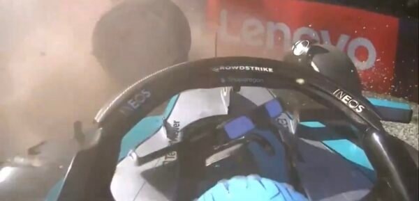 Russell a en effet taper un mur avant de terminer sur le flanc gauche, sa monoplace arrêtée au milieu de la piste dans l’avant-dernier tour.